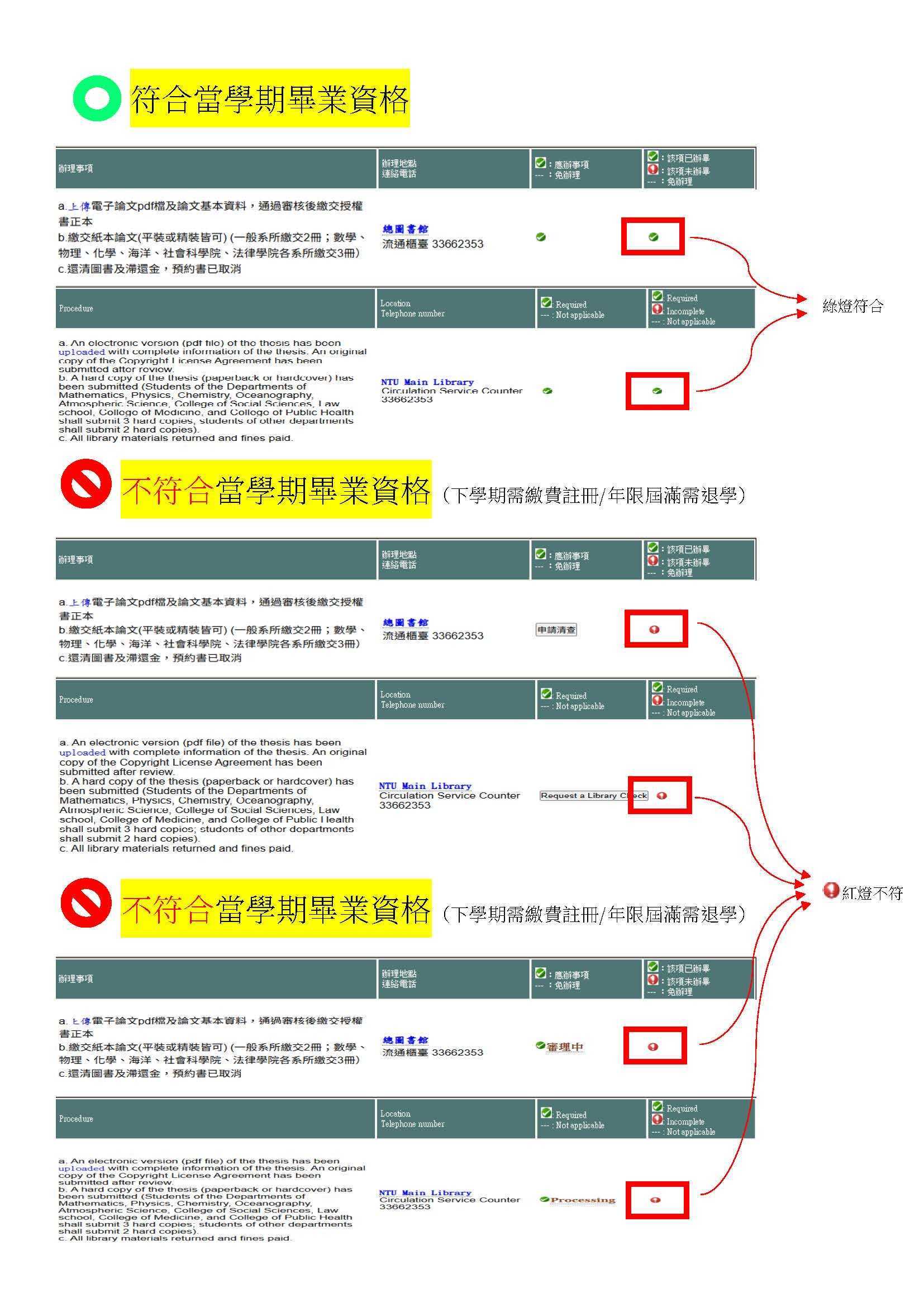 3.研究生不能以已於2月25日前上傳電子論文認定是114-1畢業生,2月26日早上清查離校系統,離校系統「圖書館」關卡「未辦畢」,皆非114-1畢業生。